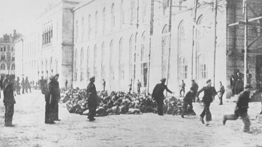 Gara din Iași în 30 iunie 1941, locul de unde au pornit trenurile morții(pe rutele Iași-Călărași și Iași-Podu Iloaiei), în care și-au pierdut viața circa 6.000 evrei. În total, în Pogromul de la Iași au fost uciși între 13.266 și 14.850 de evrei, potrivit datelor consemnate în „Raportul Final”, publicat de Comisia Internațională pentru Studierea Holocaustului în România. Imagine de pe site-ul  www.iași1941.ro, un proiect interactiv care își propune recuperarea memoriei Holocaustului. Proiectul este realizat de Institutul „Elie Wiesel”, în colaborare cu Primăria Iași.